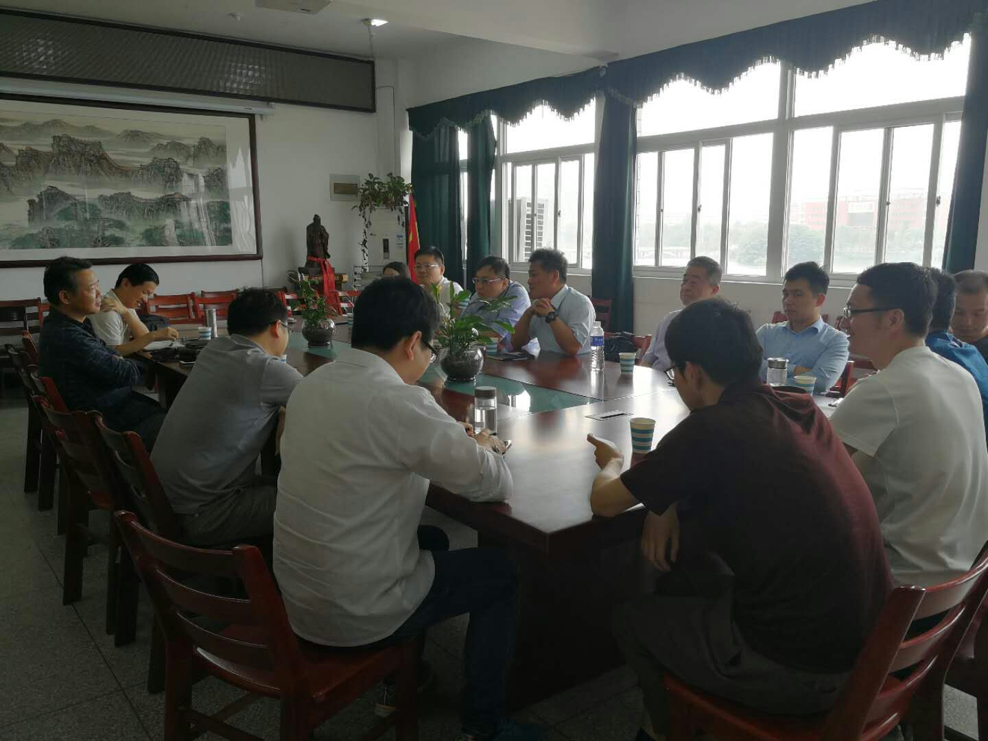 5月17日,池州华宇电子有限公司总经理彭勇、台湾硕呈科技股份有限公司市场部经理林政宪一行共7人在大别山区域发展研究院和安庆发展研究院常务副经理金文斌,副经理潘开颜、副经理詹文法的陪同下来公司参观考察,并和公司师生在稼先楼会议室进行座谈调研。