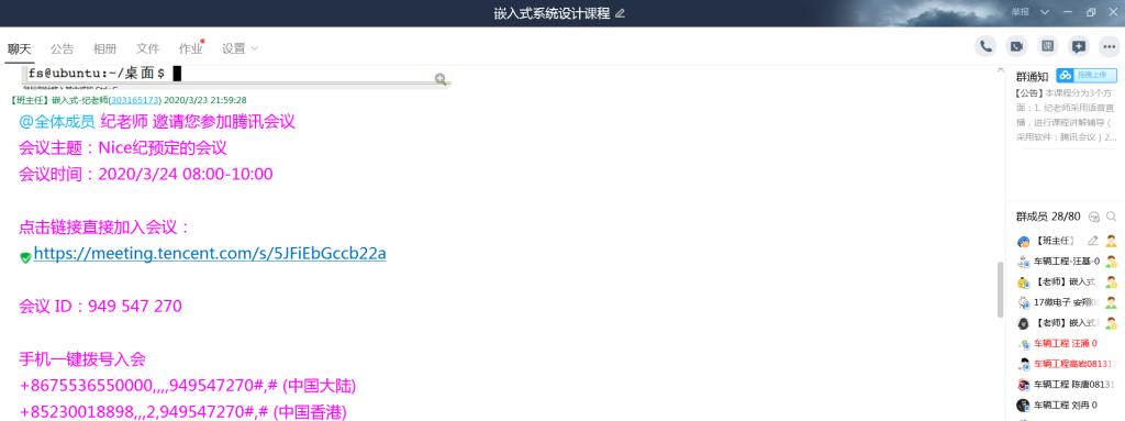 面对本次突发的新冠肺炎疫情,学校和学院积极贯彻教育部“停课不停学”的政策,充分利用“互联网+教育”的作用,按时开展了线上教学。针对17级微电子科学与工程和车辆工程《嵌入式系统设计》课程,通信系纪娟娟老师探索企业Linux系统实践+腾讯会议的硬件系统+中国大学MOOC+雨课堂四位一体的线上教学模式。