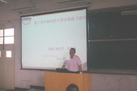 6月20日,应公司邀请,合肥工业大学机械与汽车工程学院朱华炳教授在公司龙山校区稼先楼多媒体教室为学院师生作了题为“2014日本工程教育考察报告---基于项目驱动的工程实践能力培养”的学术报告。报告会由学院经理张杰教授主持,副经理江巨浪教授、机械专业的部分老师及160名机械专业员工参加了报告会。