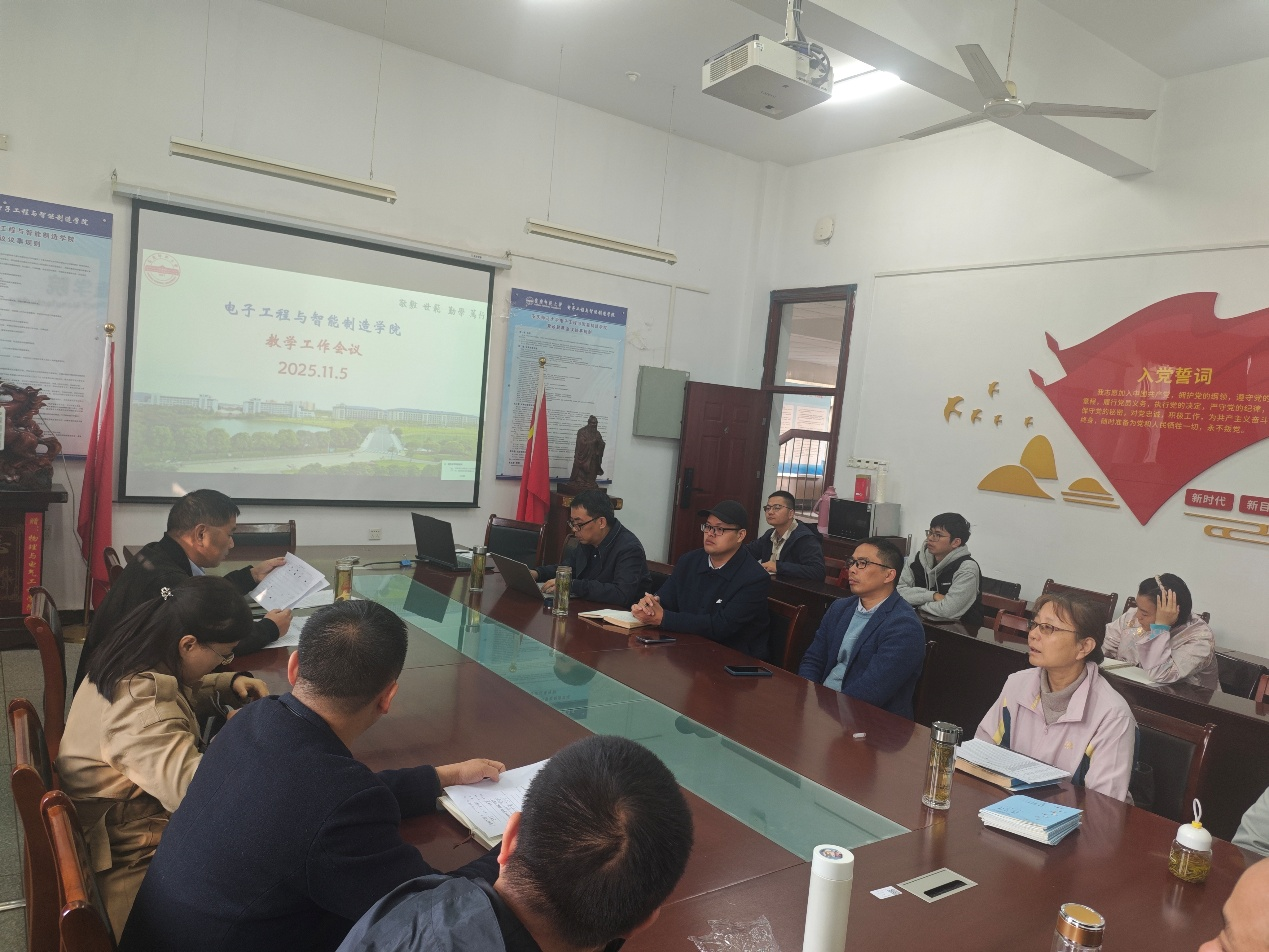 11月5日,电子工程与智能制造学院2025-2026年第1学期期中教学工作会议在稼先楼南119会议室召开。会议由副经理章礼华主持,各系主任、教研室主任、专业负责人及教学办公室相关老师参加了会议。