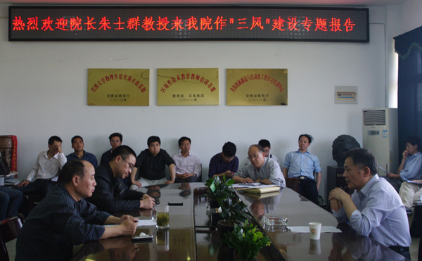 最后,朱经理指出,一个大学风气的形成需要一定的条件,既要只争朝夕,也不能急功近利、搞形式主义。学校有责任为“三风”建设创设条件和环境。要不断提高教师待遇,同时要创设公平、民主、和谐、公开的环境。希望物理与电气工程学院通过“三风”建设,加强专业调整、资源优化,进一步提高人才培养质量,促进员工更好地发展。