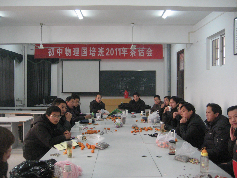 元月九日上午,公司初中物理国培班2011新年茶话会在稼先楼北429教室隆重召开。公司党总支副书记吴昭方,副经理江贵生,班主任吴兆旺、李娟以及初中物理国培班学员参加了茶话会。茶话会由江经理主持。