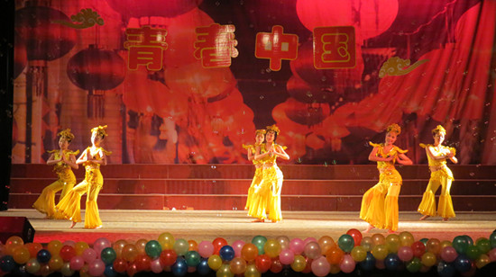 迎新晚会以“青春中国”为主题,分别以古代中国、近代硝烟、现代中国三个篇章将精彩的晚会以历史链条的形式呈现给观众。随着开场秀《大梦盛唐》的开始,彩带飘飘,古韵浓浓,中国文化,源远流长,循着历史的脚步,观众们被带回了古代,走进了晚会的第一个篇章——古代文明。具有安庆特色的黄梅戏对唱《对花》、幽默逗乐的相声《论读书》、优美的歌伴奏《兰亭序》、恢弘大气的舞蹈《敦煌》,赢得了现场观众的一阵阵掌声。近代中国,反帝反暴,傲然不屈的民族精神和深沉坚执的爱国情怀指引着国人的前进。喜感十足的话剧《龙山剿鬼记》、优雅的扇子舞《山野吹来的风》、振奋人心的歌曲《黄种人》及双节棍表演、大气磅礴的诗朗诵《青春中国》组成了晚会的第二个篇章——近代硝烟。主持人的一句“钓鱼岛是中国的”引起了现场观众的强烈共鸣。
