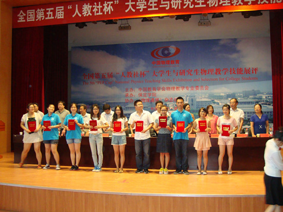 7月26日—28日,由中国教育学会物理教学专业委员会主办、保定学院承办的全国第五届“人教社杯”老员工与研究生物理教学技能展评大赛在保定学院成功举办。由公司选派的7名同学代表学校首次参加了此项大赛。