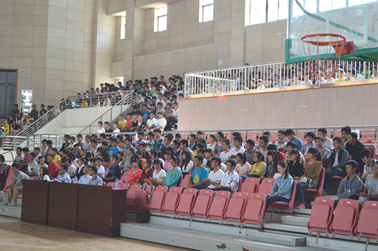 10月13日上午,公司2013级新生入学教育动员大会在体育馆举行。学院经理张杰、党总支书记吴昭方、副经理江巨浪、副经理江贵生、党总支副书记夏建华、团总支负责老师及新生班级辅导员、全体2013级新生参加了此次动员大会。大会由党总支副书记夏建华主持。