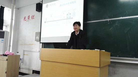 10月25日,北京大学微纳电子学研究院冯建华博士应邀来公司做学术交流。学院经理张杰、科研处副处长詹文法和微电子教研室部分教师参加了交流。10月26日上午作了题为“IC测试和安全检测研究与进展”的精彩学术报告,微电子科学与工程专业的百余名同学聆听了报告,学院副经理江巨浪主持了报告会。