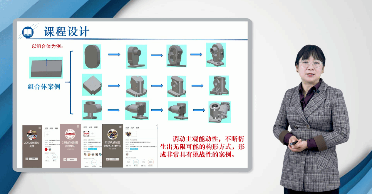袁圆老师所授课程为《画法几何及机械制图》中的螺纹的画法,袁老师以实际生产生活中的螺纹为案例,引导员工学习了螺纹的基本要素,并通过项目式引导的方法开展教学,展示了螺纹的画法,组织员工深入的学习了机械螺纹的知识,并融入课程思政内容。充分激发了员工的学习兴趣,培养员工的团队协作能力和解决工程实际问题的能力。