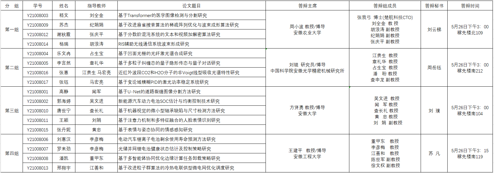 电子工程与智能制造学院信息与通信工程学位点2024届毕业论文答辩分组一览表