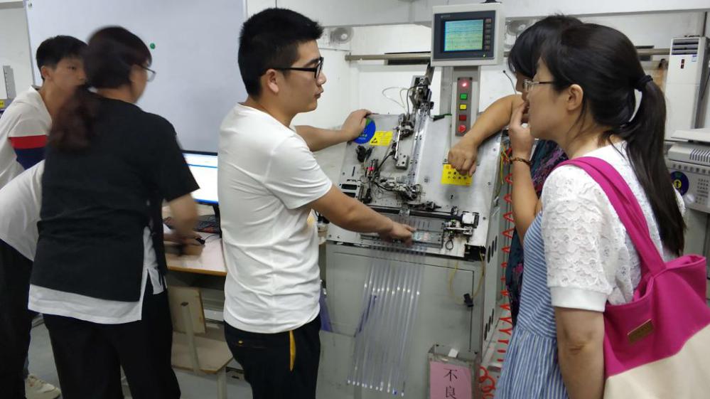 (微电子科学与工程专业员工在集成电路封装测试研发实验室接受培训)