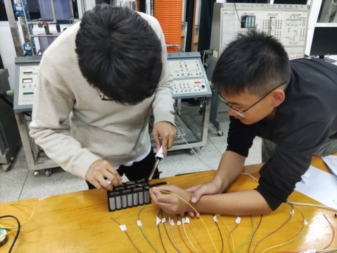 (自动化专业员工在制作“挑战杯”比赛作品)