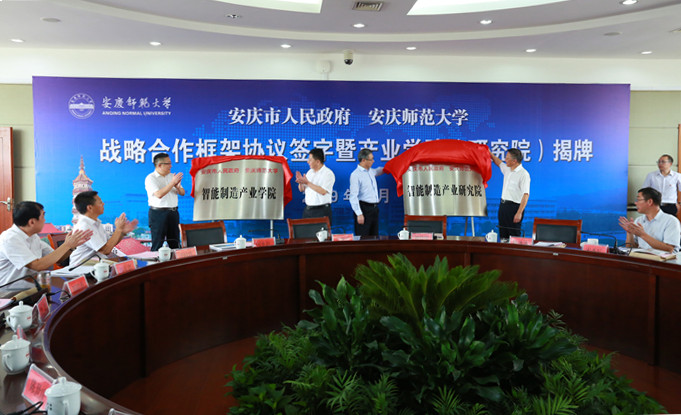 (2019年8月,公司与安庆市人民政府在龙山校区举行智能制造产业学院(研究院)揭牌仪式)