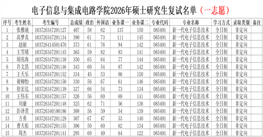 122cc太阳成集团2026年硕士研究生复试名单(一志愿)